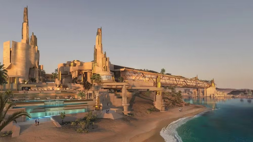 Neom,o megaprojeto futurista na Arábia Saudita,está consumindo 20% de todo o aço do mundo em sua construção — Foto: Reprodução/NEOM