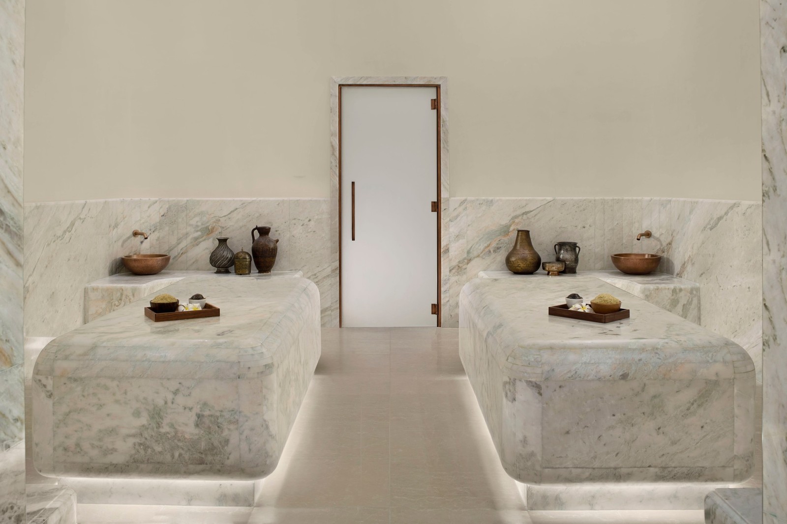 Spa do resort Nujuma,inaugurado em maio de 2024 na ilha de Ummahat,na Arábia Saudita — Foto: Reprodução / Facebook