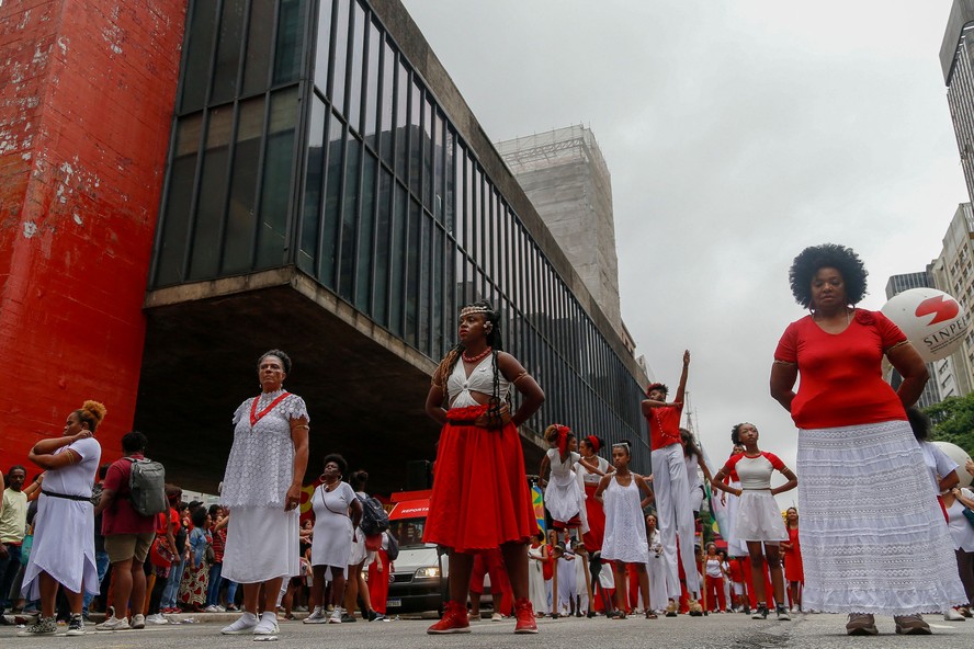 Ato contra o racismo,em São Paulo,no Dia da Consciência Negra — Foto: Miguel Schincariol/AFP RESUMOSem tempo? Ferramenta de IA resume para você