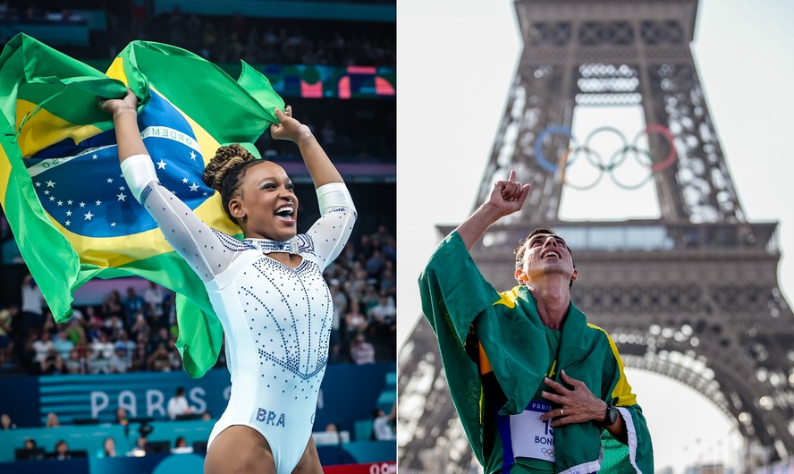 Rebeca Andrade e Caio Bonfim: destaques em Paris-2024 e melhores do ano pelo COB — Foto: Montagem em fotos de Wander Roberto/COB e Alexandre Loureiro/COB