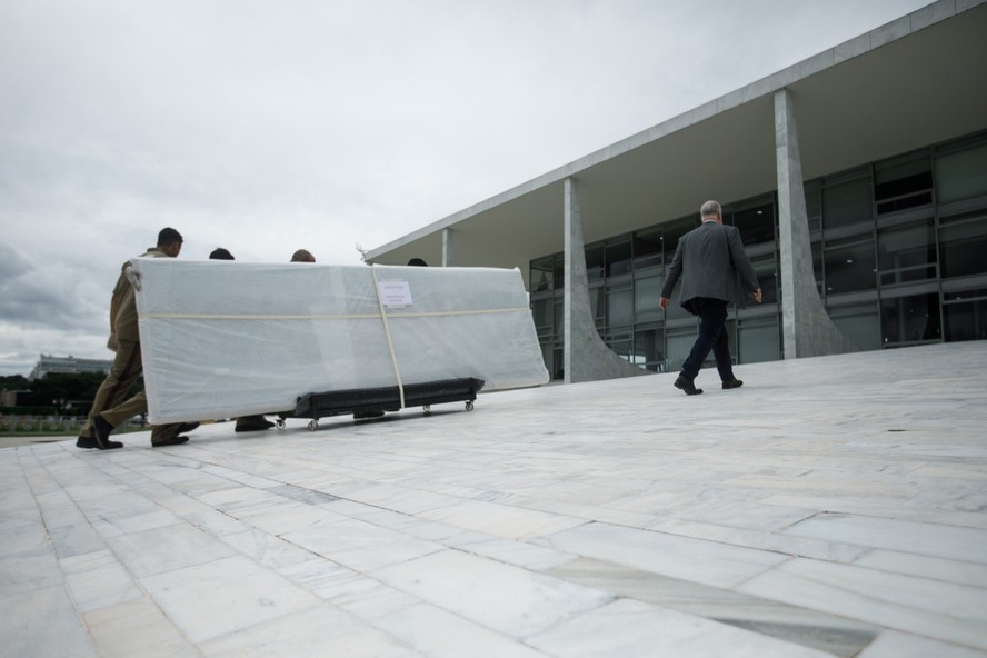 Obras de arte restauradas chegam no Palácio do Planalto sob proteção da Polícia Federal na última segunda-feira — Foto: Brenno Carvalho/Agência O Globo