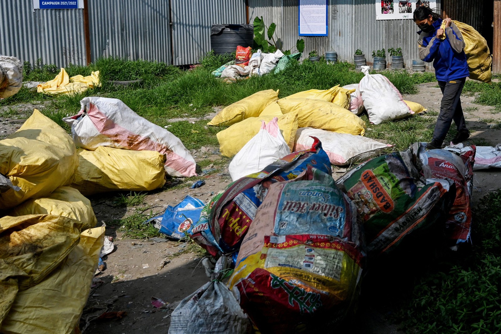 Além do lixo,há o custo de milhares de dólares e até oito socorristas para resgatar cada corpo — Foto: Prakash Mathema/AFP
