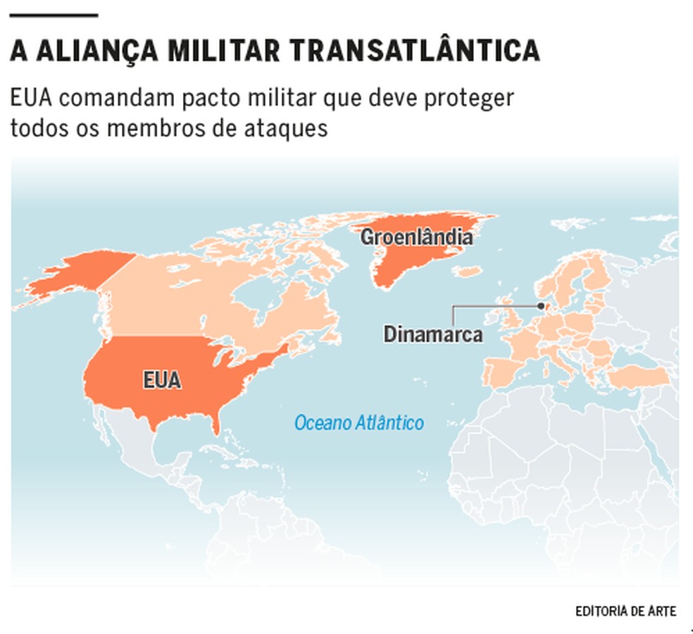O flerte expansionista de Trump,porém,seja ele real ou bravata,esbarra em algo maior e mais complexo: a Otan (a Organização do Tratado do Atlântico Norte). Em uma entrevista coletiva na terça-feira,o republicano não descartou uma ação militar para tomar a Groenlândia,alegando ser um território vital para a segurança americana. Conhecida como “tesouro do Ártico” por suas riquezas naturais e posição geoestratégica,a maior ilha do mundo tem um governo autônomo,mas faz parte do Reino da Dinamarca,que,assim como os EUA,é sócio-fundador da aliança militar ocidental baseada nos princípios de defesa coletiva e assistência mútua.