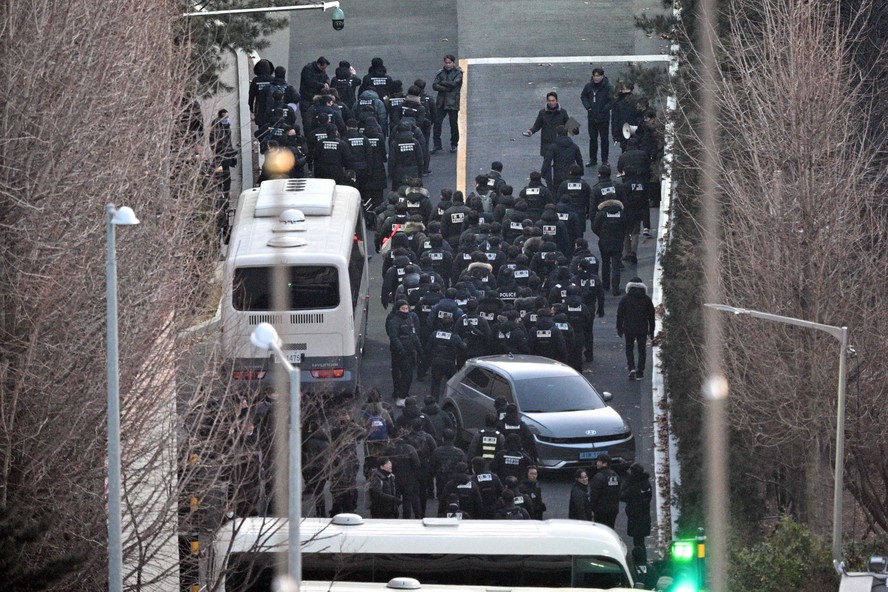 Cerca de 3.500 agentes de polícia foram convocados para a segunda tentativa de prender o presidente afastado da Coreia do Sul — Foto: ANTHONY WALLACE / AFP