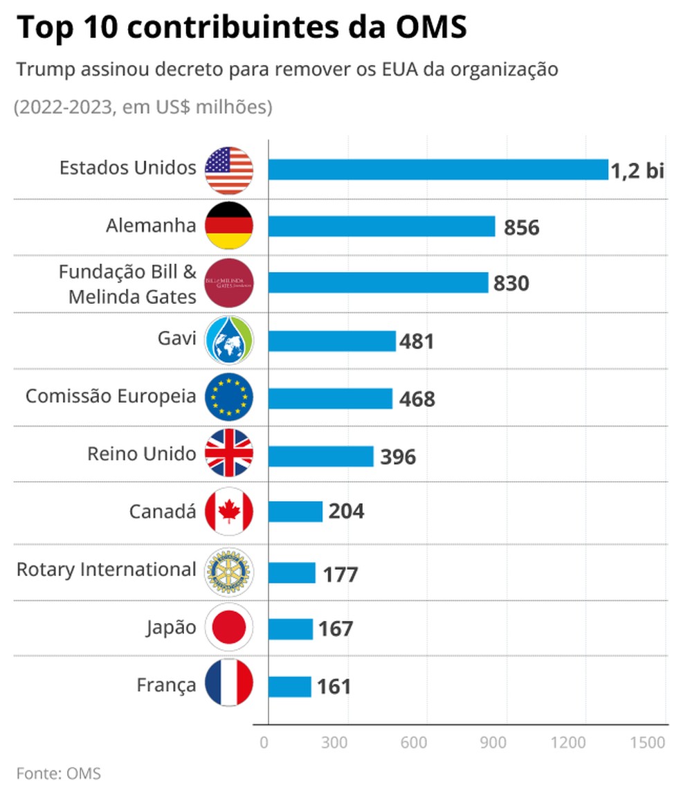 Top contribuintes da OMS — Foto: Arte/O Globo