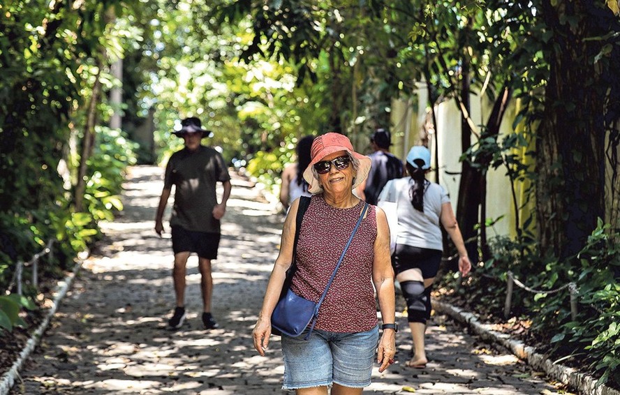 Célia Regina caminha na Pista Cláudio Coutinho,na Urca: “Se não estou aqui,tento passear em algum shopping: vejo as modas e ainda aproveito o ar-condicionado” — Foto: Agência O Globo / Gabriel