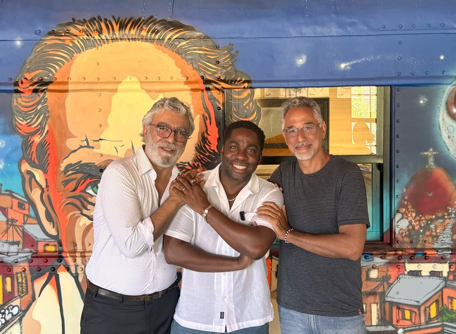 Lázaro Ramos,que fará a nova temporada de “Os outros”,do Globoplay,visitou a Ação da Cidadania,no Centro do Rio. O ator e diretor vai desenvolver parcerias culturais com a ONG ao longo de 2025,ano em que seu fundador,o sociólogo Herbert de Souza,completaria 90. Na foto,ele está com Pascoal Soto,agente literário,e Daniel Souza,filho de Betinho e presidente do Conselho da instituição.