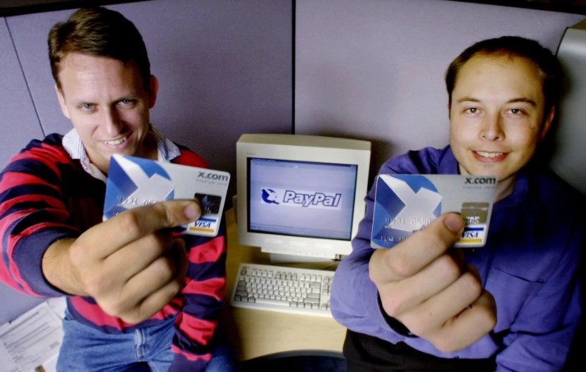 Musk co-fundou a X.com em 1999,empresa de pagamento de serviços financeiros on-line e de e-mail. O negócio se fundiu com a Confinity,uma instituição de operações financeiras. Fusão entre as duas companhias deu origem ao Paypal,depois vendido para o Ebay por US$ 1,5 bilhão em 2002.