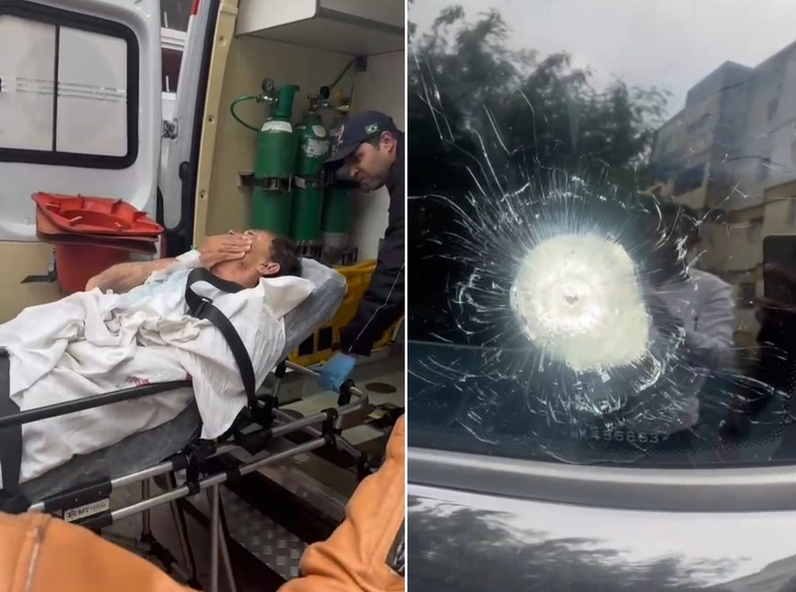 Imagens mostram socorro ao prefeito de Taboão da Serra,Aprígio,e marca de disparo em seu veículo — Foto: Reprodução