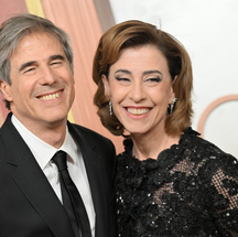 Fernanda Torres e Walter Salles no tapete vermelho do Oscar 2025 — Foto: Robyn Beck / AFP