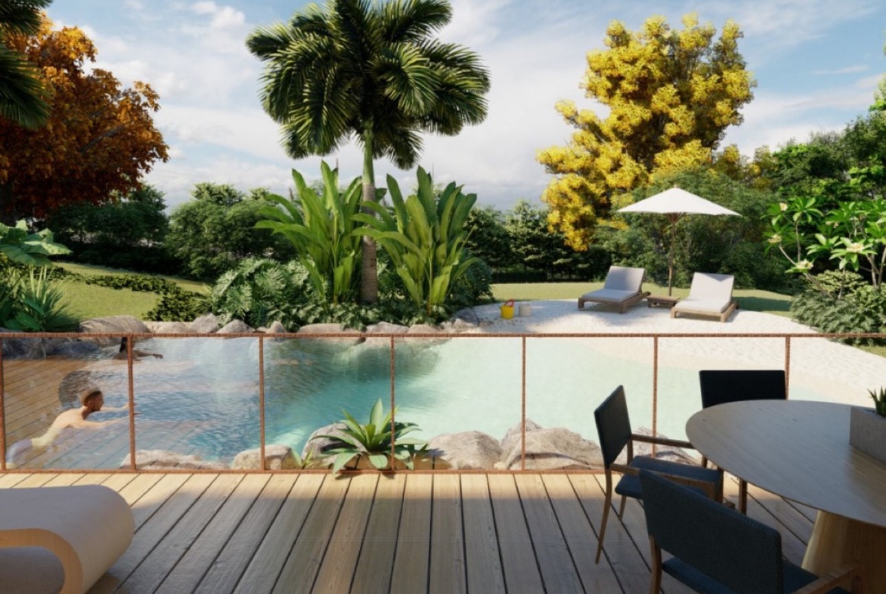 Área da piscina da mansão que Aline Gotschalg e Fernando Medeiros estão construindo