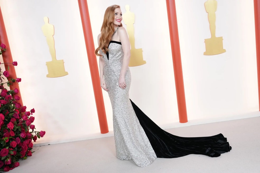 Jessica Chastain no Oscar — Foto: Jutharat Pinyodoonyachet/The New York Times