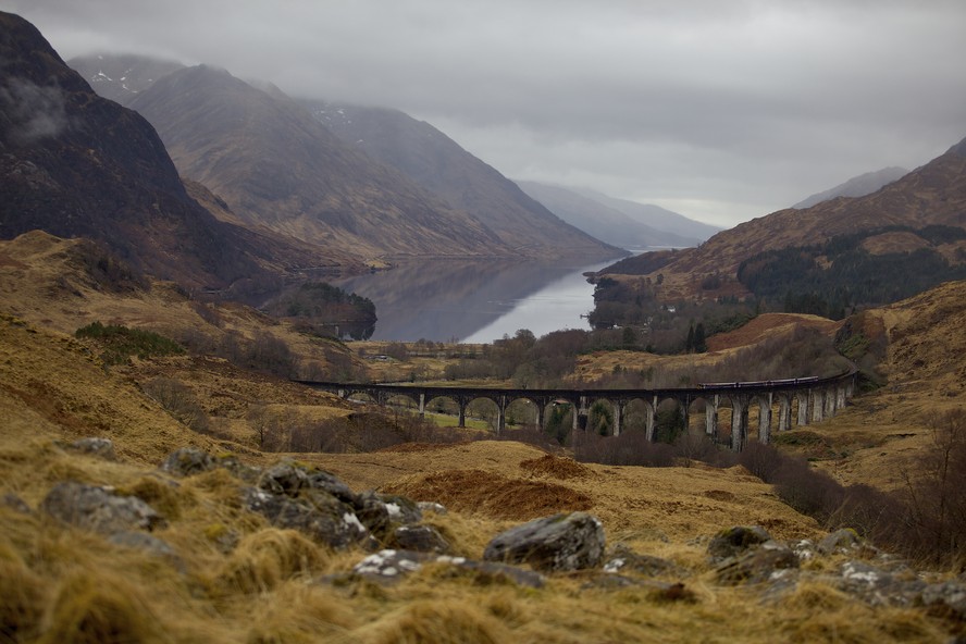 O famoso Viaduto Glenfinnan,acima de Loch Shiel,fica entre Fort William e Mallaig,na Escócia — Foto: Kieran Dodds/The New York Times