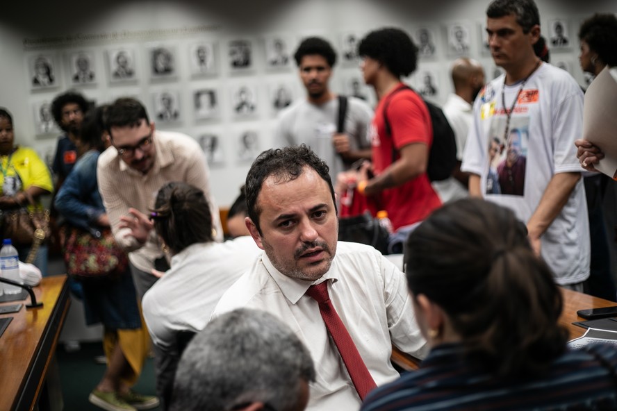 Glauber Braga e o militante Gabriel Costenaro discutiram dentro das dependências da Câmara. Houve empurrões e chutes do parlamentar contra o militante. O deputado Kim Kataguiri (União-SP) também estava presente.