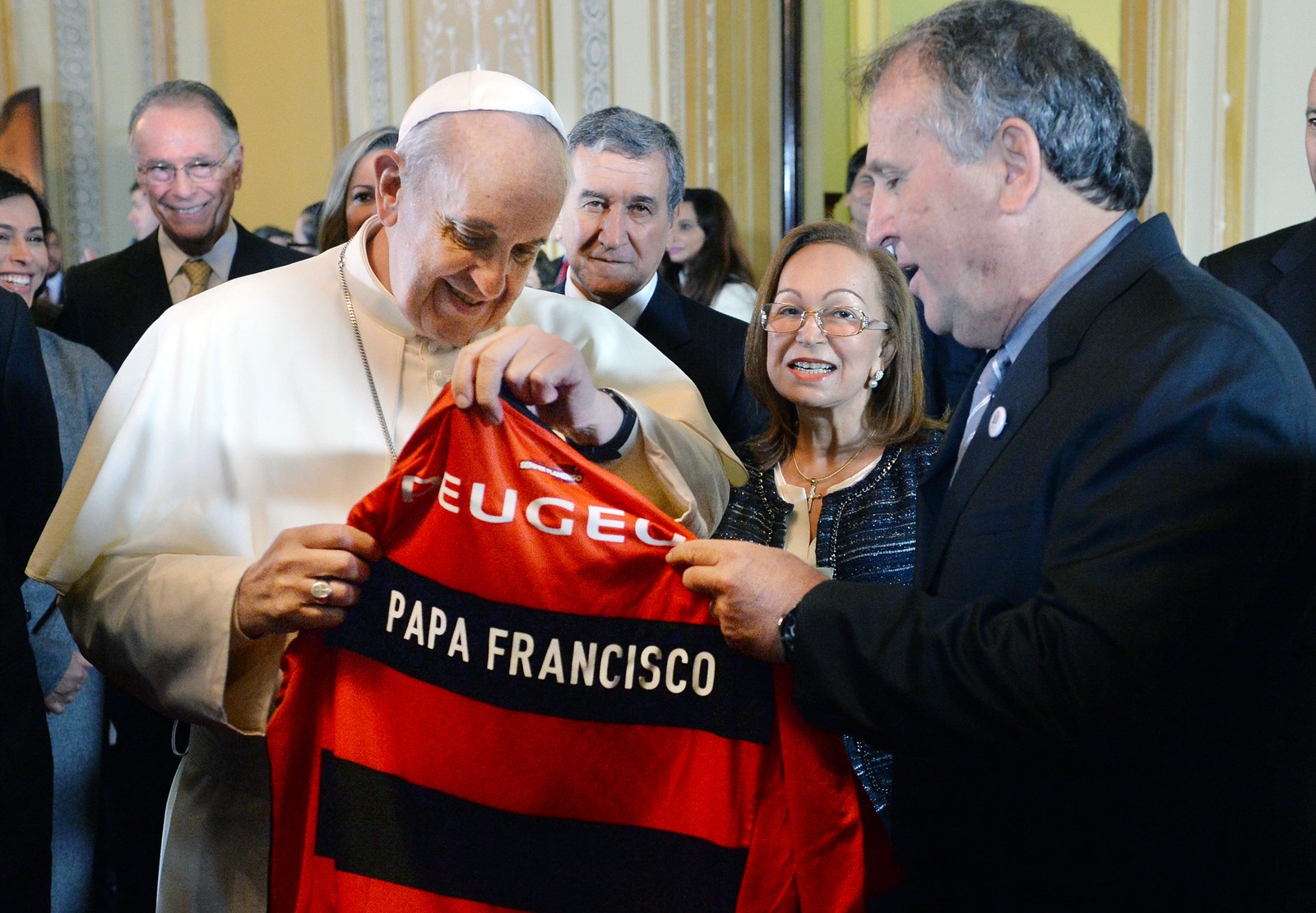 Papa Francisco recebe uma camisa do Flamengo do ex-jogador Zico,em 25 de julho de 2013 — Foto: Luca Zennaro / AP