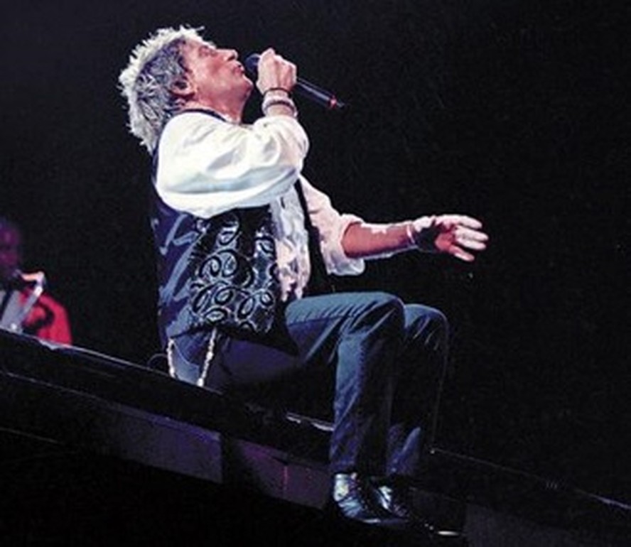 Rod Stewart voltou ao Rio para o primeiro Rock in Rio: se apresentou duas vezes,nos dias 13 (foto) e 16 de janeiro — Foto: Arquivo
