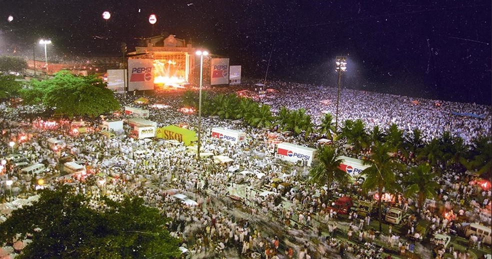 Todo mundo sabe que é recomendável evitar alimentos pesados —uma feijoada,por exemplo — antes de praticar atividades físicas,como correr,nadar ou fazer um show na praia em pleno verão. Desavisado,Rod Stewart encarou,dizem,um feijão nada amigo e teve uma indisposição que atrapalhou,mas não tirou o brilho da sua apresentação na praia de Copacabana,no réveillon de 1994. Primeiro grande evento do tipo no local,a festa — que teve a abertura da banda Blitz,aquela de “Você não soube me amar” — reuniu cerca de 3,5 milhões de pessoas na Avenida Atlântica,segundo os cálculos da Polícia Militar e da Defesa Civil,um recorde que entrou para o Guinness como,até então,o maior show gratuito da História.