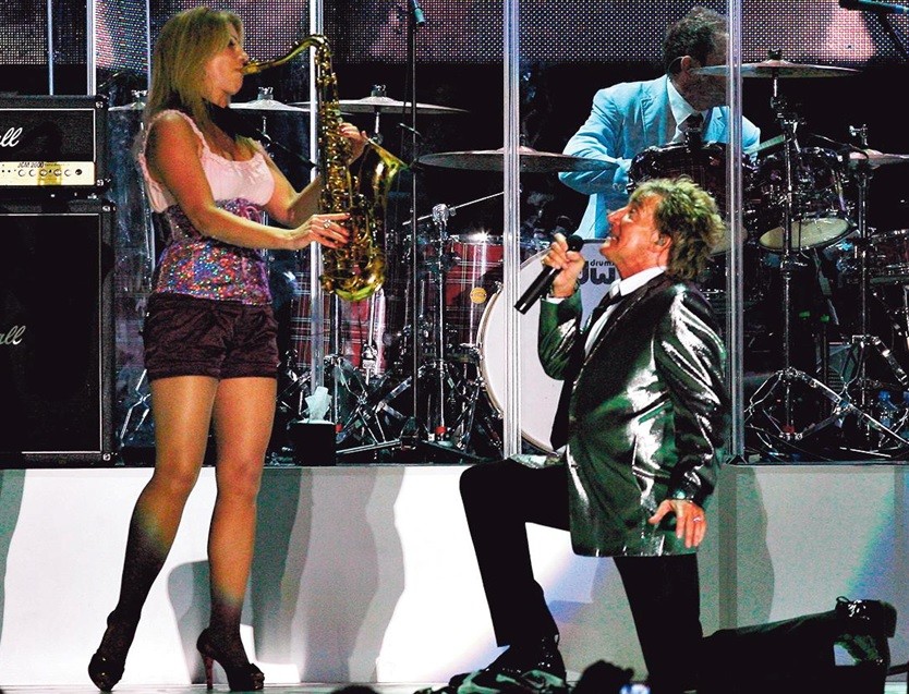 No show de 2008,que Rod Stewart realizou na então HSBC Arena,atual Farmasi Arena,destacou-se a presença de palco da saxofonista Katja Rieckermann — Foto: André Coelho