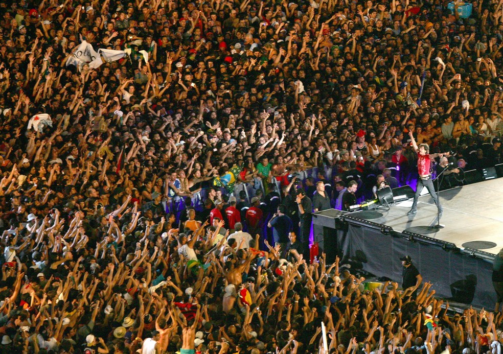 Rolling Stones,em 2006. A banda de Mick Jagger apresentou seus clássicos,de “Start me up” a “Satisfaction” e reuniu cerca de 1,5 milhão de pessoas entre cariocas e muitos turistas. O palco montado na areia tinha uma passarela que o ligava ao Copacabana Palace,onde a banda e sua equipe estava hospedada. Maior show da história do grupo britânico,a apresentação foi transmitida para diversos países e rendeu um CD e um DVD.