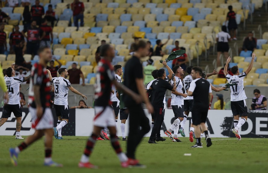 Elenco do Flamengo deixa Maracanã cabisbaixo enquanto Central Córdoba celebra — Foto: Alexandre Cassiano