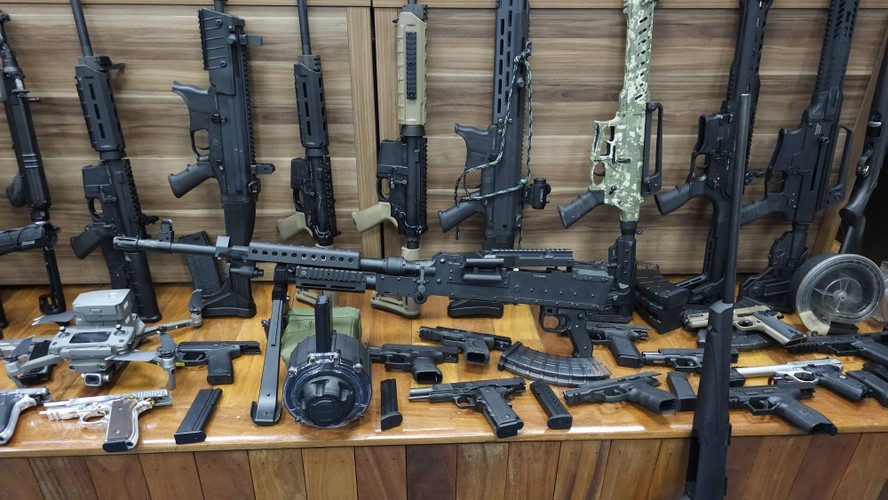 Dinheiro e armas apreendidos na operação conjunta da Polícia Civil e do Ministério Público do Rio,por meio do Gaeco,mirou criminosos que forneciam armas e drogas e lavavam dinheiro para o CV —