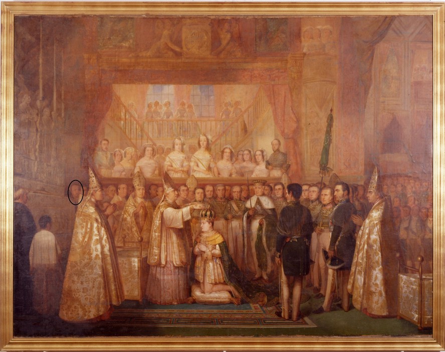 Por 183 anos,o pintor francês François-René Moreaux passou despercebido por quem observava o quadro “O Ato da Sagração e Coroação de D. Pedro II”,de sua autoria. Em uma espécie de autorretrato,Moreaux está entre os participantes da cerimônia representados na pintura que reproduz a coroação do imperador Dom Pedro II. A descoberta recente ocorreu quase que por acaso,durante o processo de higienização da obra. O rosto foi identificado pelo historiador e pesquisador Maurício Vicente Ferreira Júnior,que comparou a imagem com a de um retrato óleo sobre tela de Moreaux.
