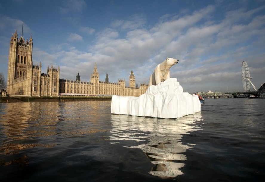 Escultura em Londres,em evento de conscientização sobre as consequências do aquecimento global — Foto: AFP PHOTO/ Shaun Curry