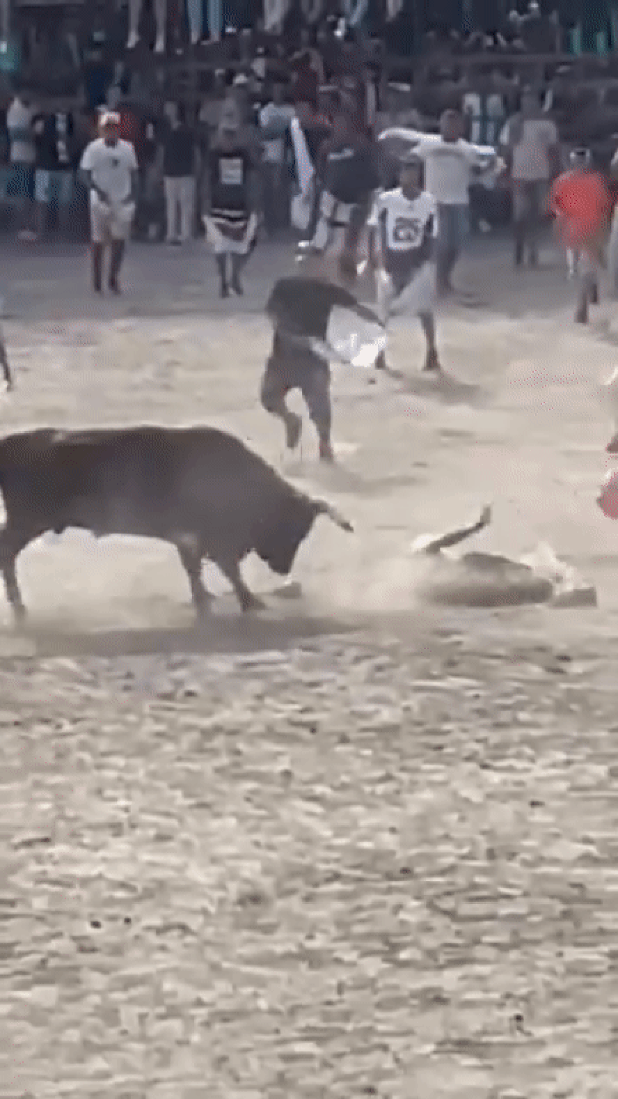 No vídeo,é possível ver que o homem,que não teve a identidade revelada,é atacado pelo touro na arena diversas vezes. Enquanto isso,um grupo de homens tenta distrair o animal para resgatar o indivíduo. Na gravação,também há gritos que vem da arquibancada.