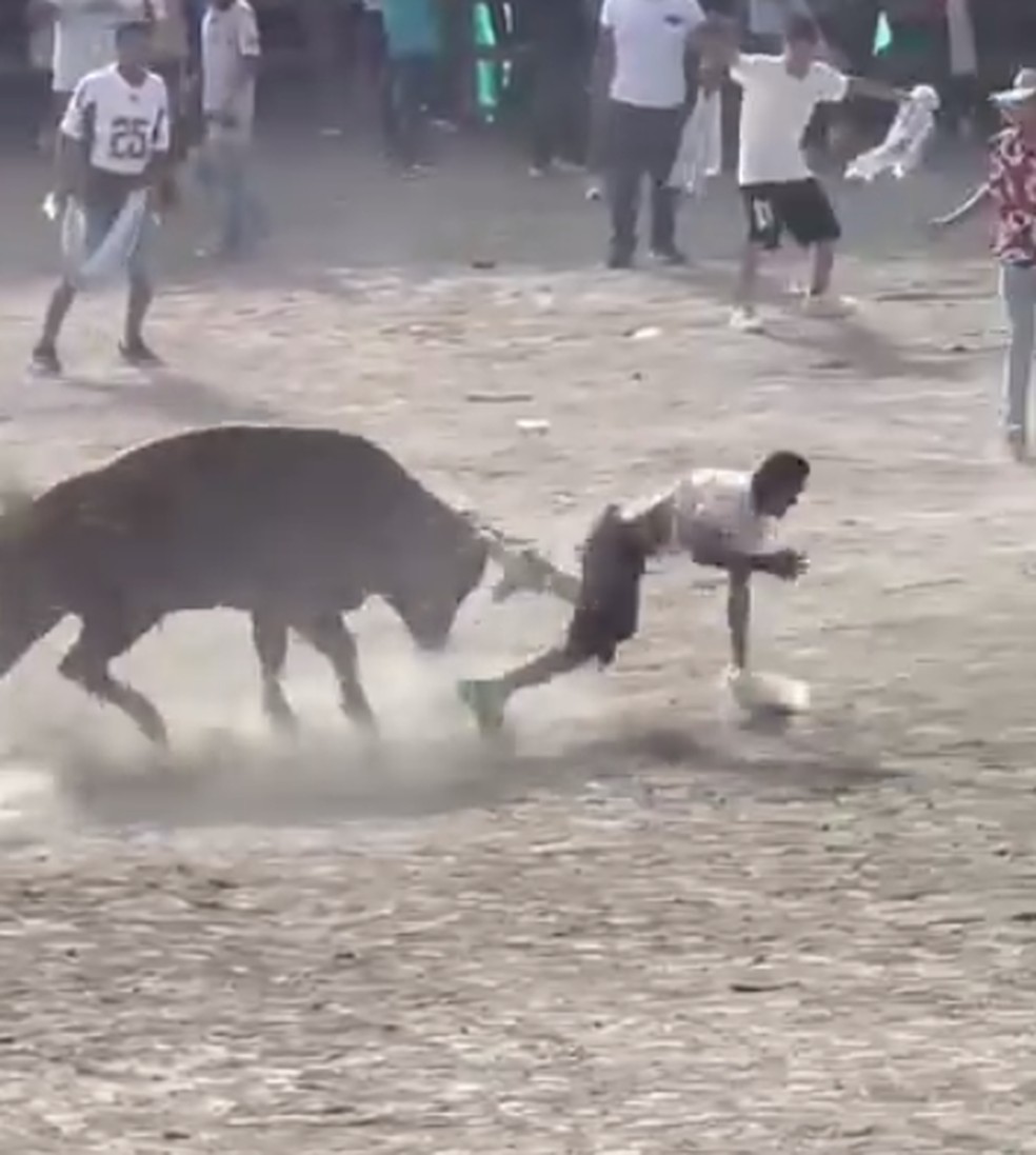 Touro ataca homem durante festival de tourada na Colômbia — Foto: Reprodução