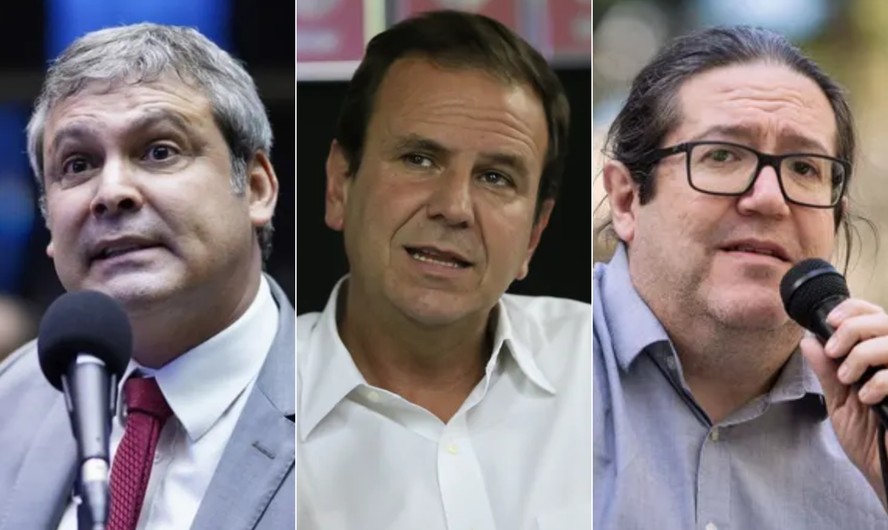 Lindbergh Farias (à esquerda) defende movimento “Petistas com Tarcísio” (à direita),enquanto o partido fechou apoio a Paes (centro) — Foto: Pablo Valadares/Câmara dos Deputados,Roberto Moreyra e Divulgação