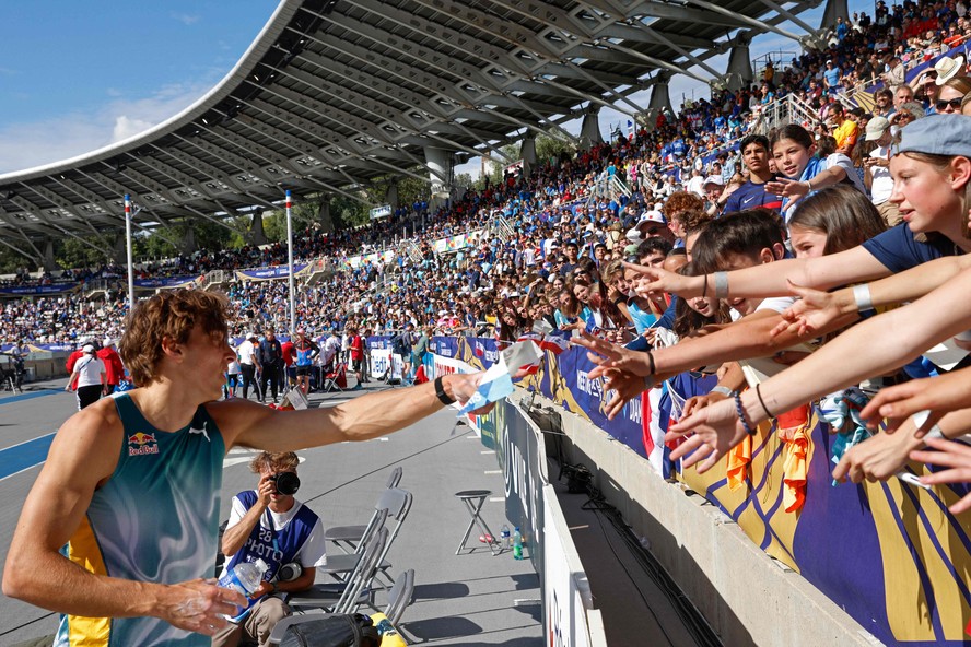 Armand Duplantis,no Meeting de Paris,da Diamond League: estrela — Foto: Photo by GEOFFROY VAN DER HASSELT / AFP