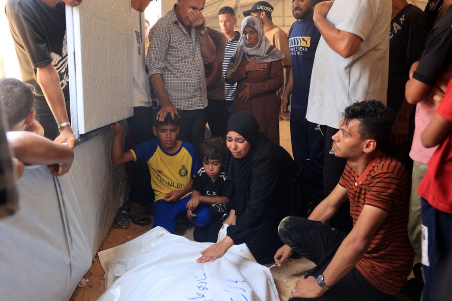 Um ataque israelense contra o campo de refugiados al-Mawasi,em Khan Younis,no sul de Gaza,deixou pelo menos 71 mortos e 289 feridos,informou o Ministério da Saúde de Gaza neste sábado. As Forças Armadas israelenses afirmaram terem realizado a ação em uma região onde "dois terrorista seniores do Hamas e outros terroristas se esconderam entre civis",e oficiais afirmaram ao New York Times que se tratava do líder da ala militar do grupo,Mohammad Deif. O Hamas,por sua vez,emitiu um comunicado afirmando que as alegações são "falsas". Até o momento,não há confirmação se o comandante estava no local e se foi morto na ação.