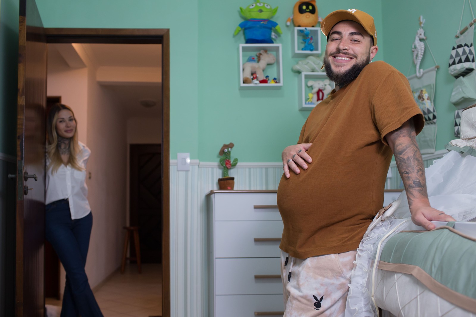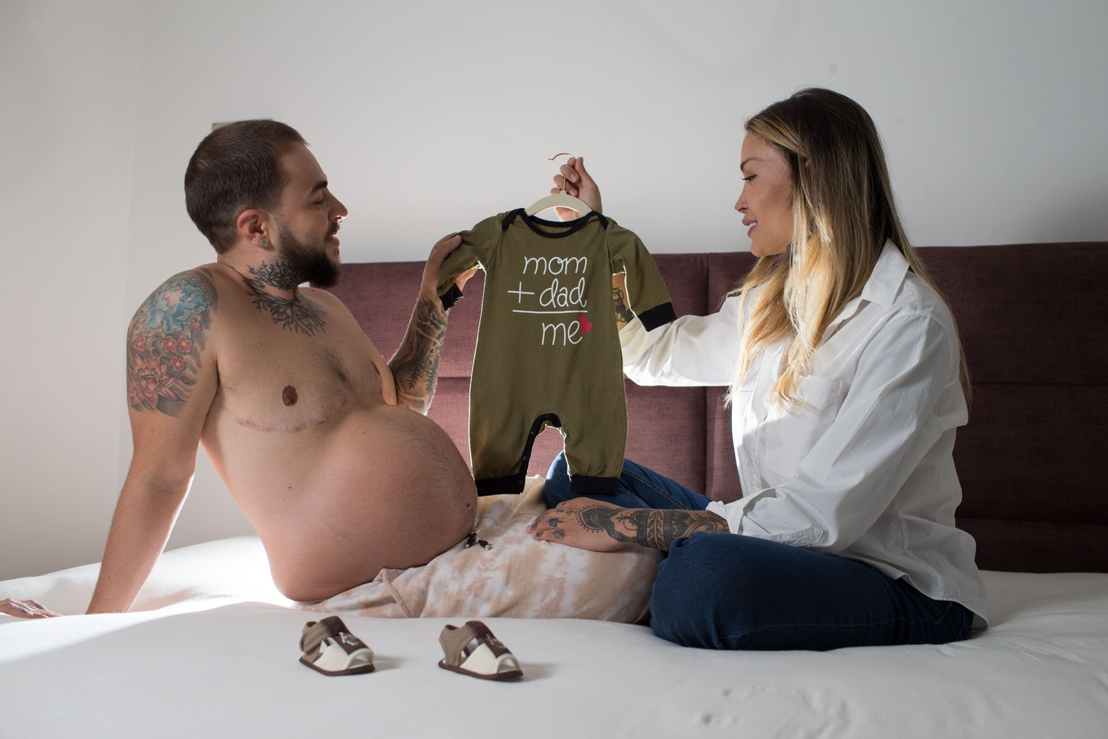 Èrika observa o marido Roberto,que está grávido — Foto: Edilson Dantas / O Globo