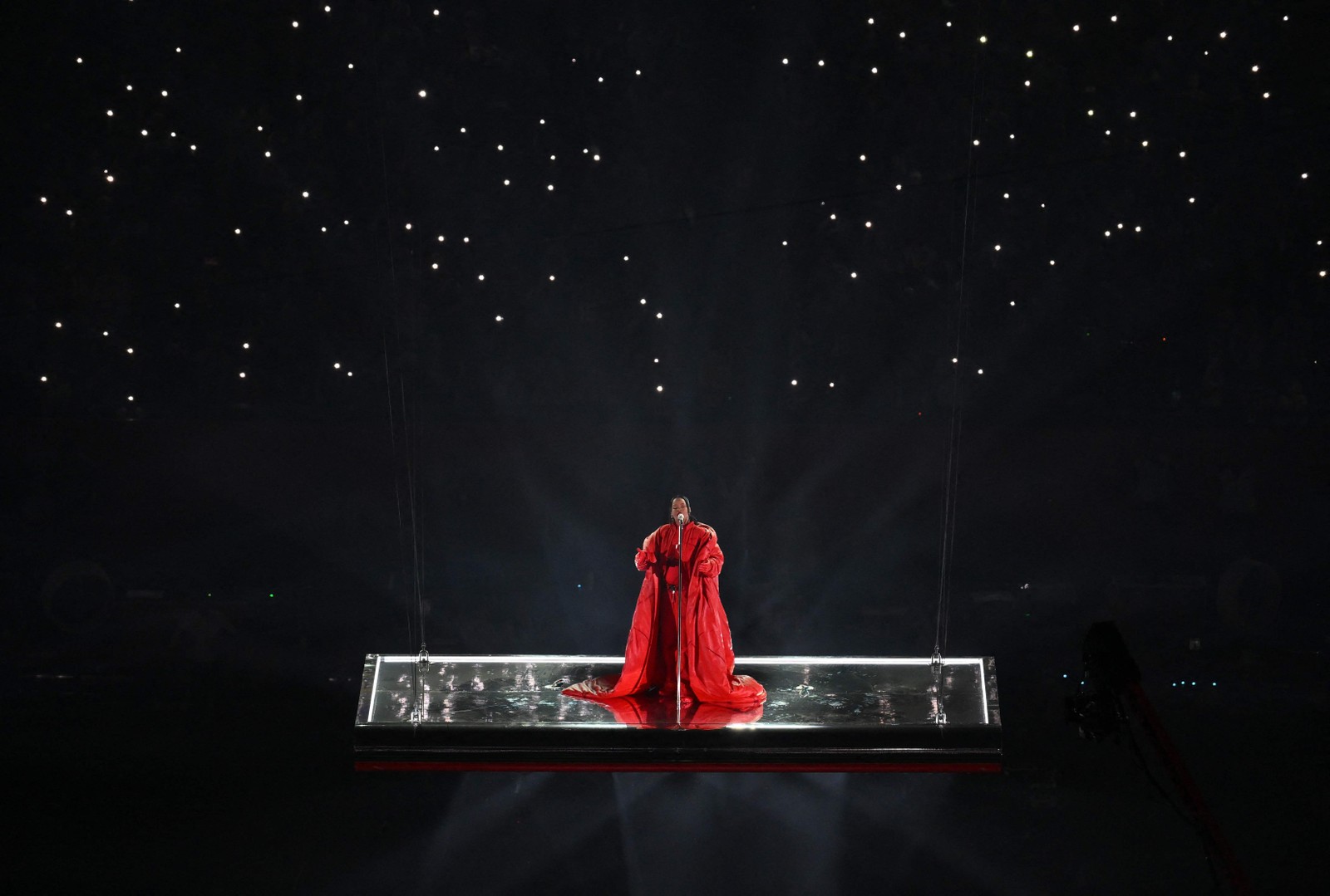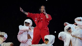 Representantes de Rihanna confirmam gravidez do segundo filho de Rihanna,depois de barriga chamar atenção no Super Bowl — Foto: TIMOTHY A. CLARY/AFP