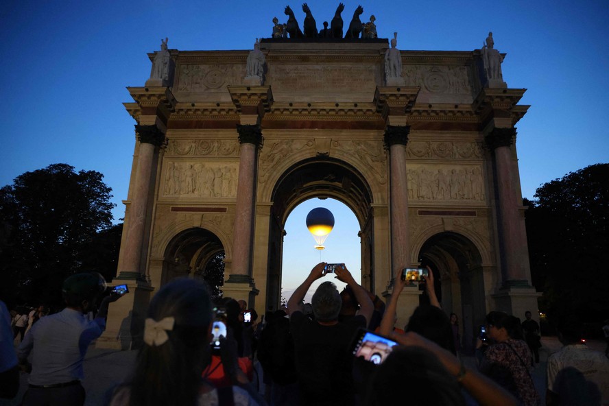 Visitantes tiram fotos no Arco do Triunfo — Foto: Ludovic MARIN/AFP RESUMOSem tempo? Ferramenta de IA resume para você