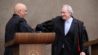 Moraes é cumprimentado pelo ministro do STF Ricardo Lewandowski — Foto: Antonio Augusto/Secom/TSE
