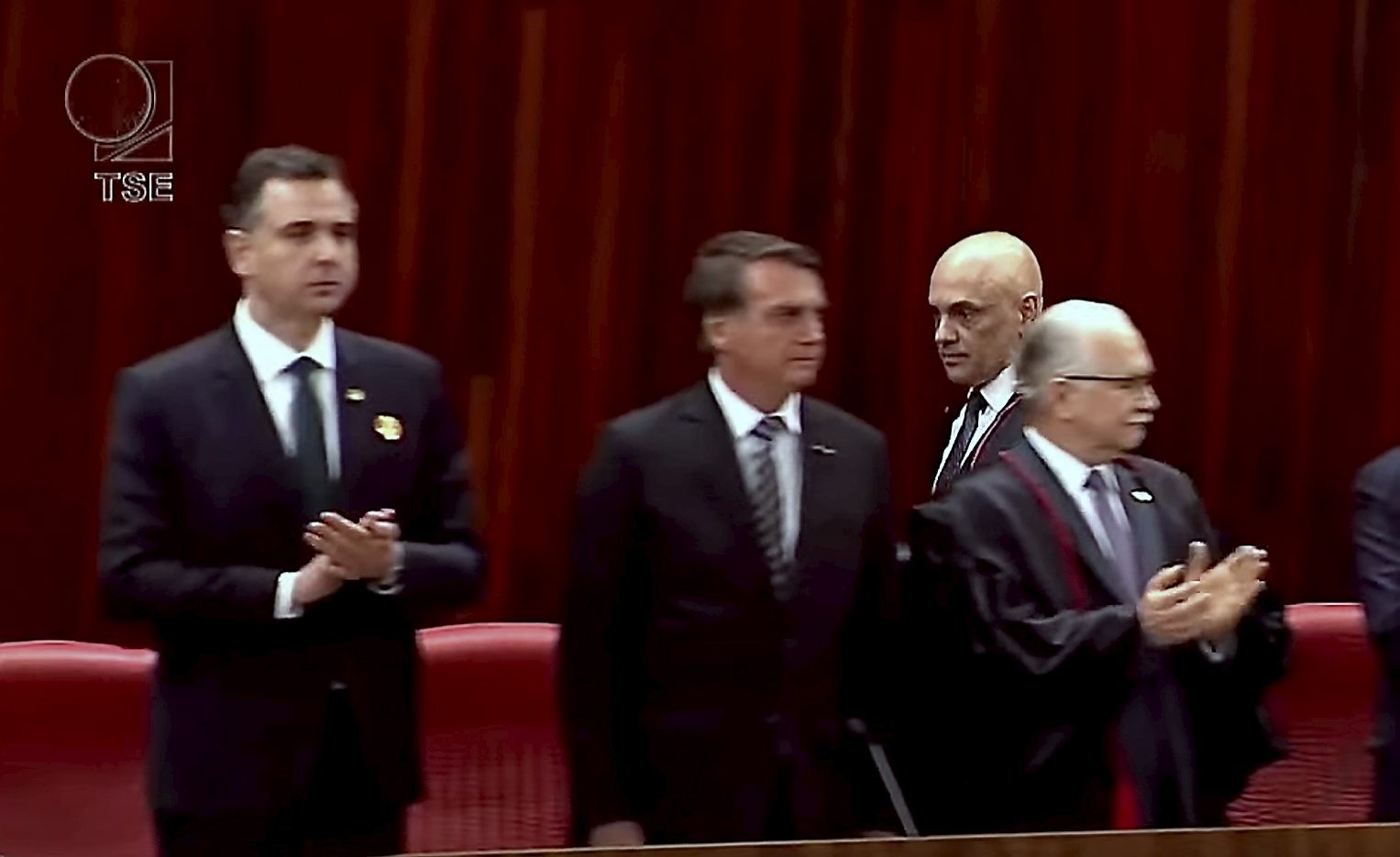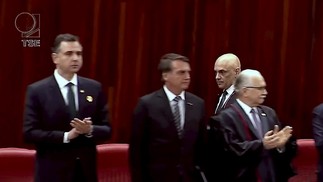 O presidente Jair Bolsonaro durante a posse de Moraes como presidente do TSE — Foto: Reprodução