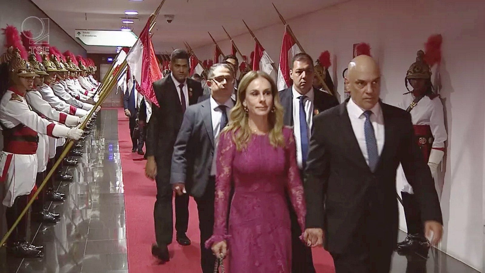 Alexandre de Moraes chega para cerimônia de sua posse como presidente do TSE,acompanhado de sua esposa — Foto: Reprodução/TSE