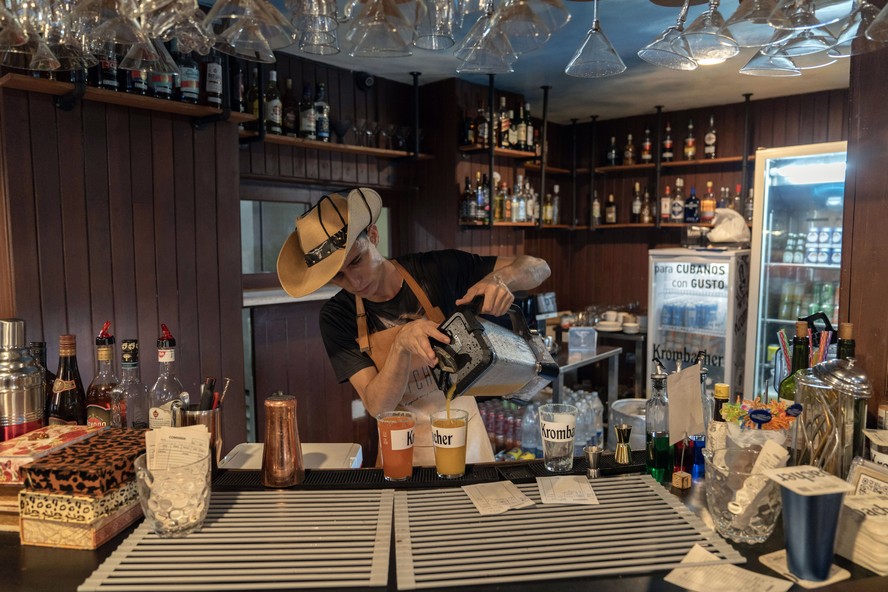 Barman serve bebidas no restaurante landmkar La Carreta em Havana,em 10 de fevereiro de 2024 — Foto: Eliana Aponte Tobar/The New York Times