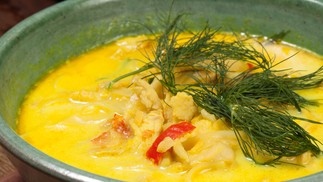 Novidade. A chef Ana Carolina Garcia acaba de incluir a Khao Soi (R$ 76),à base de curry amarelo artesanal e leite de coco,com frango orgânico,noodles de trigo e picles de folhas de mostarda no Càm O'n Thai Food (@camon.thaifood) — Foto: Divulgação/Eduardo Guedes