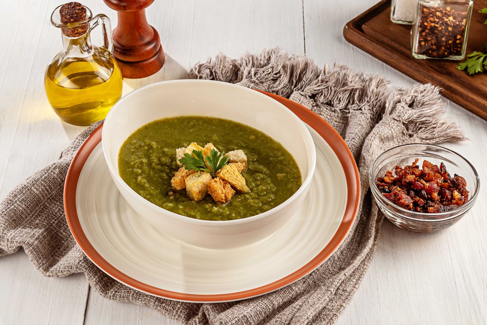 Saudável. Sopa de brócolis com bacon (a partir de R$ 23,50) do Porto do Sabor (3798-9162) — Foto: Divulgação