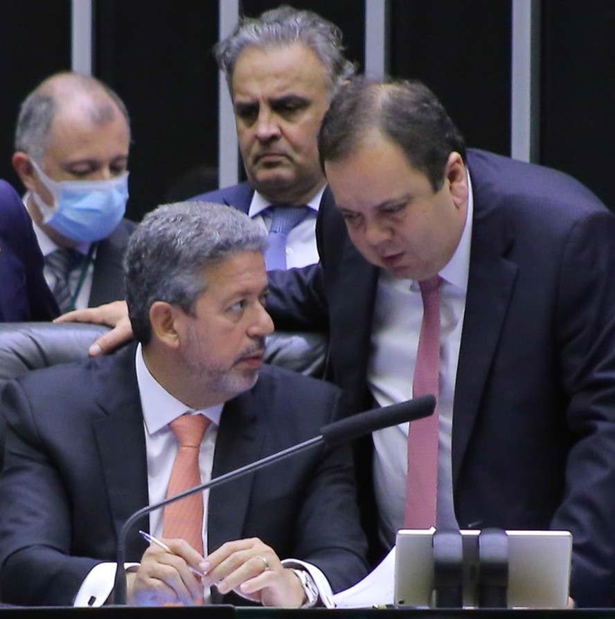 Lira e Elmar Nascimento (em primeiro plano) atuam juntos para pressionar o Palácio do Planalto e emplacar indicados no governo — Foto: Michel Jesus/Câmara dos Deputados/14.06.2022