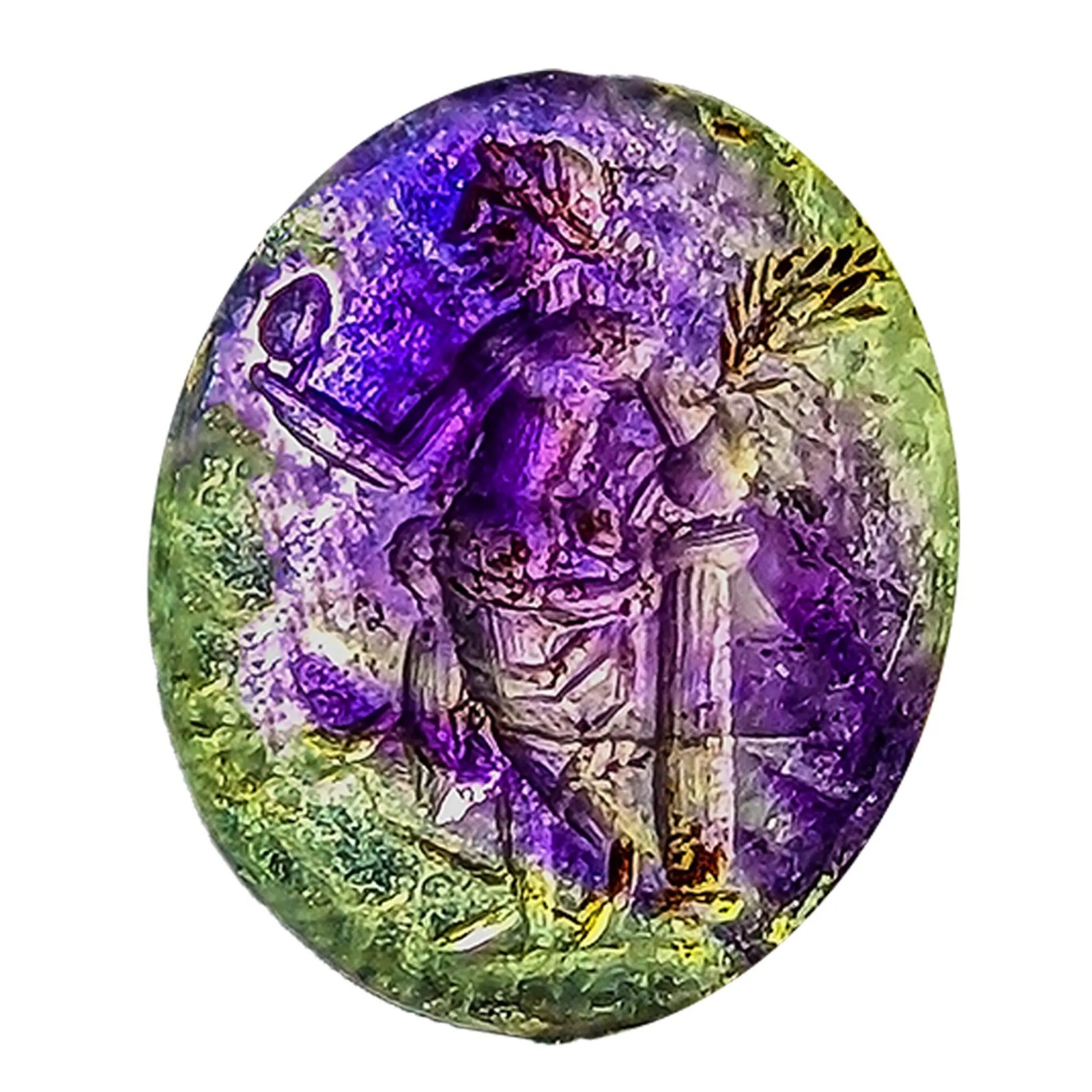 Vênus,gravada em ametista,segura uma folha de palmeira e uma flor ou espelho — Foto: Anna Giecco