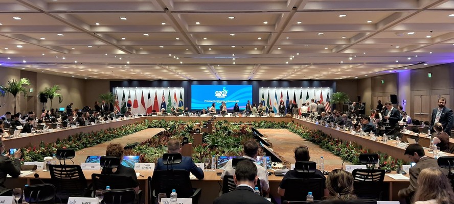 Sessão na quarta reunião da Iniciativa do G20 sobre Bioeconomia (GIB,na sigla em inglês),no Rio — Foto: Vinicius Neder