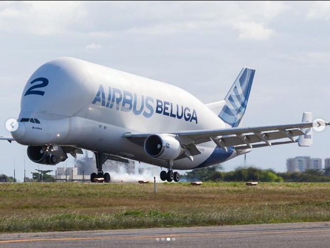 Beluga é o nome comercial de avião de carga da Airbus que é capaz de transportar grandes volumes,como partes de outras aeronaves