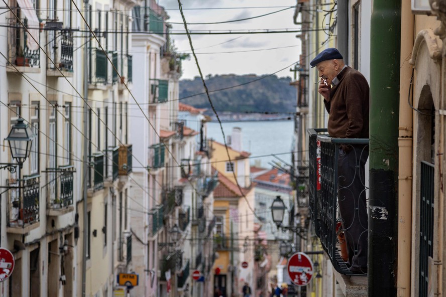 Homem fuma na varanda de um apartamento em Lisboa — Foto: Odd Andersen/AFP RESUMOSem tempo? Ferramenta de IA resume para você