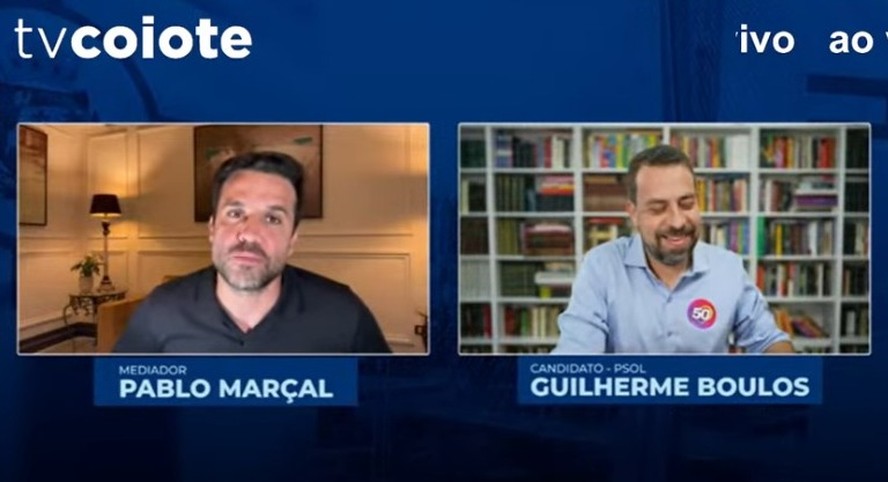Pablo Marçal (PRTB) e Guilherme Boulos (PSOL) — Foto: Reprodução Youtube A participação do candidato Guilherme Boulos (PSOL) a "entrevista de emprego" do empresário Pablo Marçal (PR
