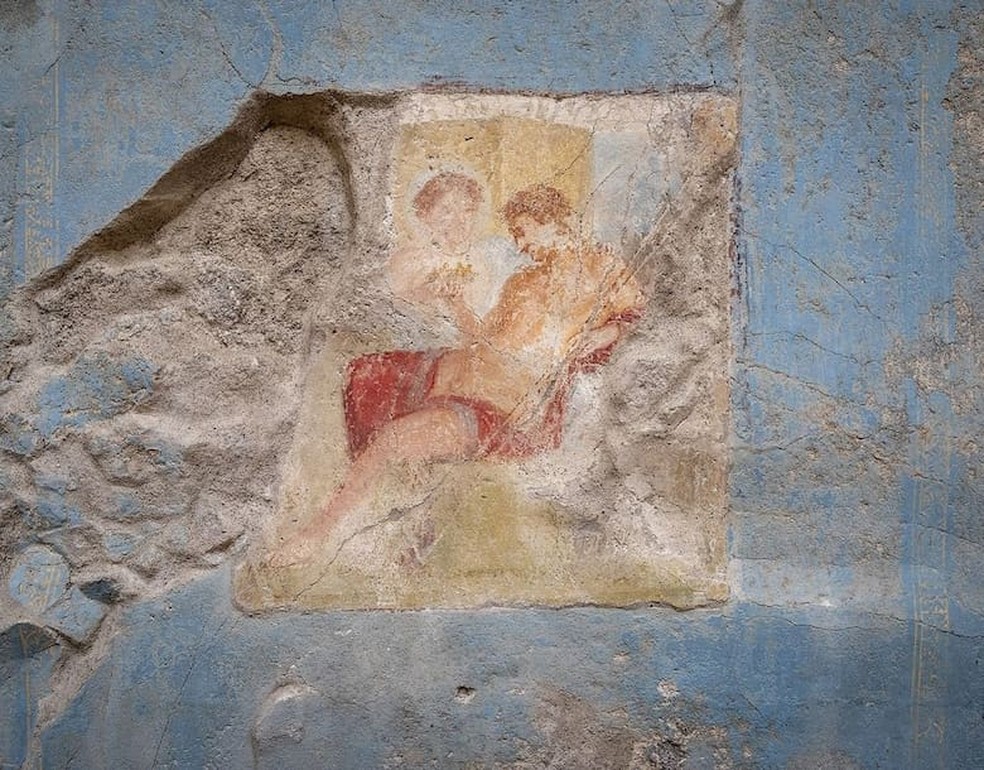 O Parque Arqueológico de Pompeia abrange quase toda a superfície da cidade,que,no ano 79 d.C.,após a erupção do Monte Vesúvio,foi coberta por cinzas e lava. Em uma recente expedição na Região IX,desenterraram afrescos eróticos impregnados nas paredes de uma pequena casa romana.