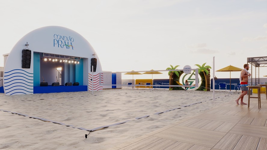 Espaço do evento Conexão Praia,no Posto 8 da Praia de Ipanema — Foto: Divulgação RESUMOSem tempo? Ferramenta de IA resume para você