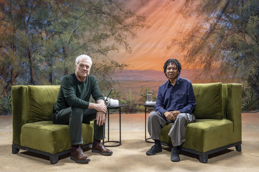 Pedro Bial e Djavan posam juntos nos bastidores do \'Som Brasil\' — Foto: Beatriz Damy/Globo Pedro Bial entrevistou Djavan para o “Som Brasil”. O programa será exibido no próximo dia 13. O canto